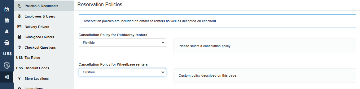 The selected cancellation policy will apply to bookings originated from Outdoorsy.