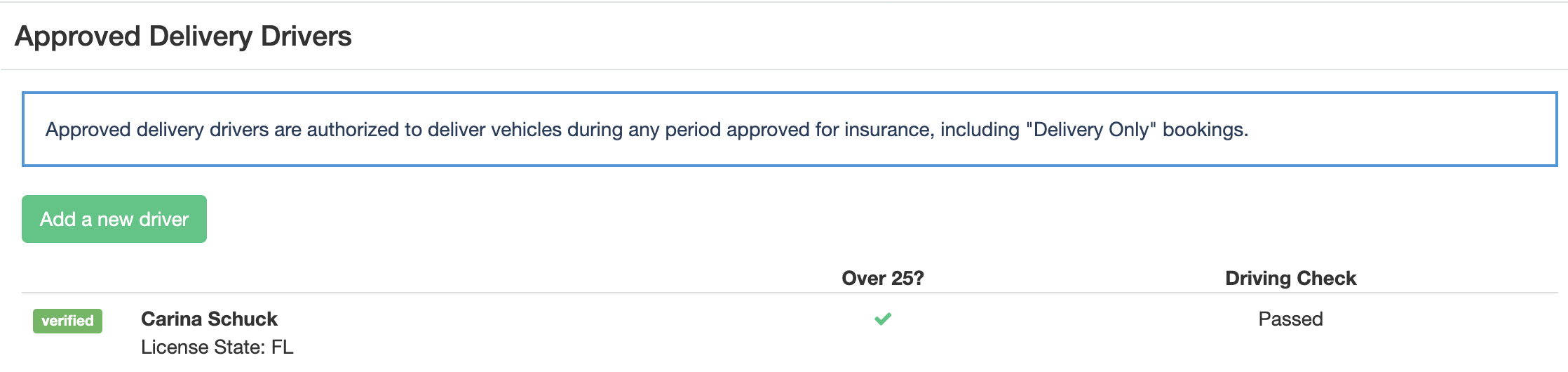 With the Stationary Protection Package premium service feature, Wheelbase hosts have the option to designate a delivery driver and have them verified and approved under their account settings. Once approved through the delivery driver verification process, they will not need to complete the verification process on each booking that has stationary coverage.