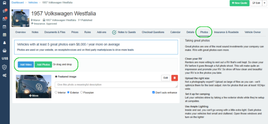 Great photos are one of the most sound investments your company can make. RVs with great photos earn more.