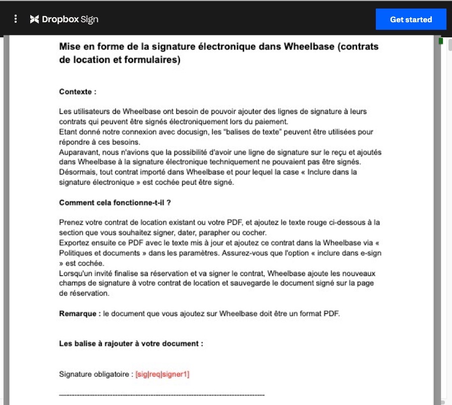 La fonctionnalité de signature électronique a évolué ! Désormais elle vous permet de capturer plusieurs signatures, initiales, dates et cases à cocher directement sur vos documents à l'aide de balises de texte. Auparavant, cette fonctionnalité était limitée à une signature unique appliquée uniquement au reçu de réservation, ce qui faisait que certains documents clés n'étaient pas signés ou n'étaient pas pris en compte.